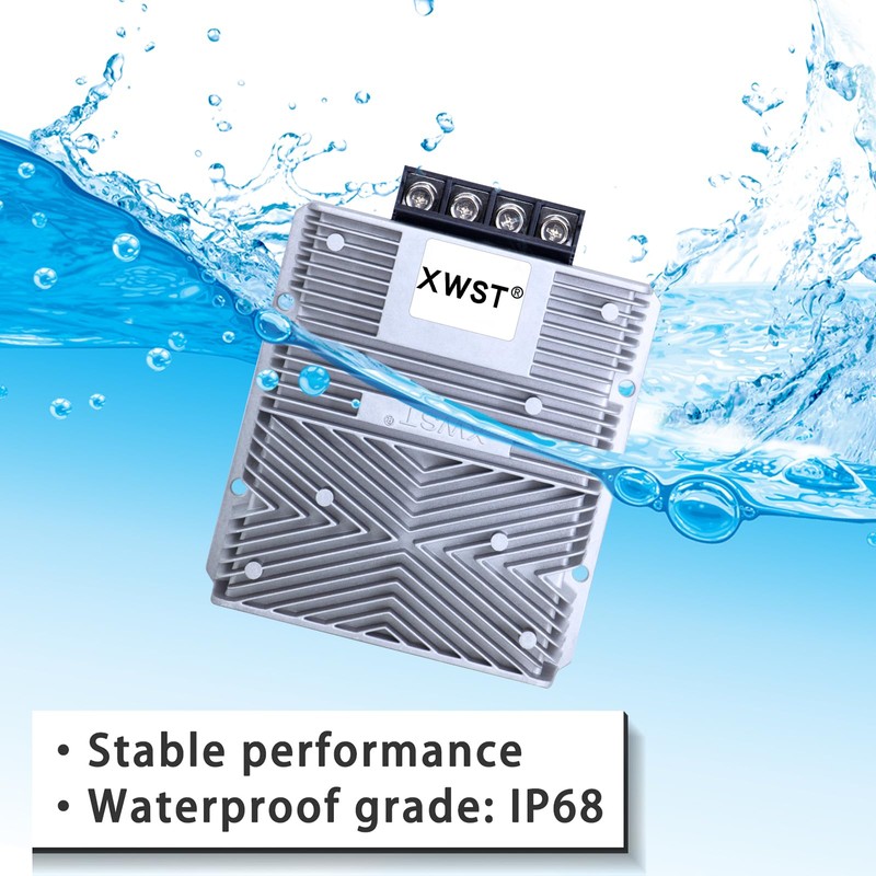 - 【IP67 Waterproof】Compact aluminium shell with epoxy potting, 100% waterproof, anti-dust, anti-shock protection and better heat dissipation These voltage converters are excellent power transformers, can work safely and reliable in -30°C~80°C range.