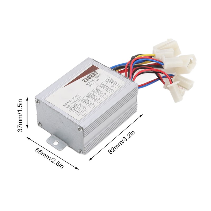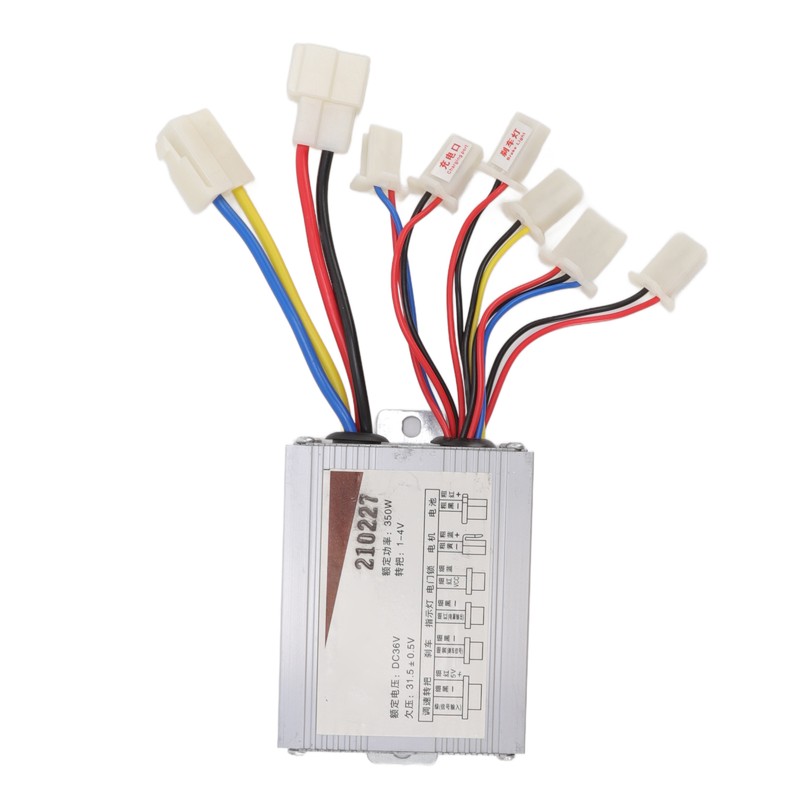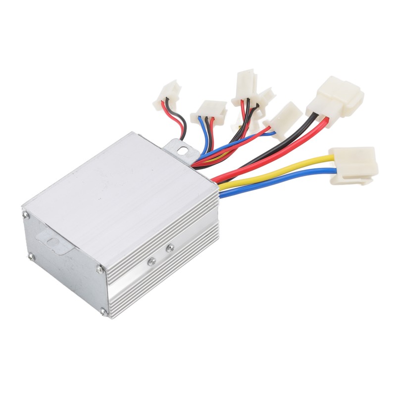 1、Excellent Function: The brushed motor speed controller is engineered to help starting more smoothly, ensuring more comfortable riding and higher driving safety. 2、Parameters: Motor brushed controller is designed for DC36V rated voltage, 350W rated power, delivering stronger climbing power and low operation sound, eliminating tire noise. 3、Metal Shell: Motor speed controller shell is made of aluminium alloy with groove design, protecting the inner circuit and good for heat dissipation to avoid thermal overloading. 4、Usages: Suitable for wind turbine scooters, mechanical equipment, electric motorcycle, DIY engine kits, razor carts, electric bikes, go karts, electric bicycles and many more other machines. 5、Under Voltage Protection: Electric bicycle brushed controller is professionally designed for 31.5±0.5V range under voltage protection, preventing burnout due to overloading.