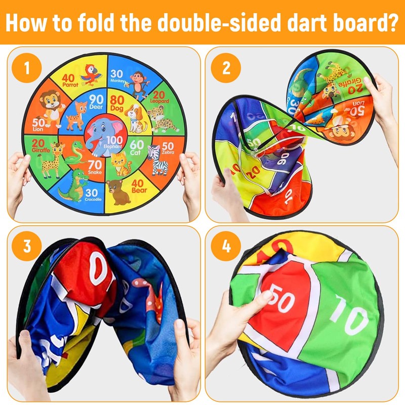 dcas Dartboard Toy Children, Dart Board Game, Throwing Game Children, 66 cm Foldable Double-Sided Dartboard, Throwing Board Children for Boys and Girls, with 12 Sticky Balls and 2 Hooks (Animal)