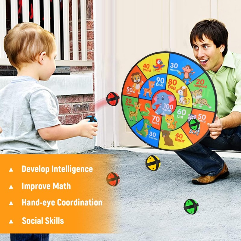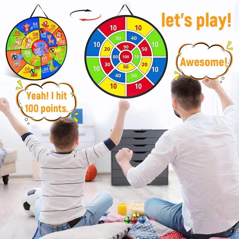 • Double-sided design: fun double-sided children's play dartboard with bright colours, one side has a cute cartoon animal pattern and the back resembles a classic dartboard with numbers. It is cheaper to buy two boards at once. The little ones are more interested in the animal side and help children learn skills. This is super easy and super fun and offers children a fun way to practice goal exercises and solve simple math problems by counting.