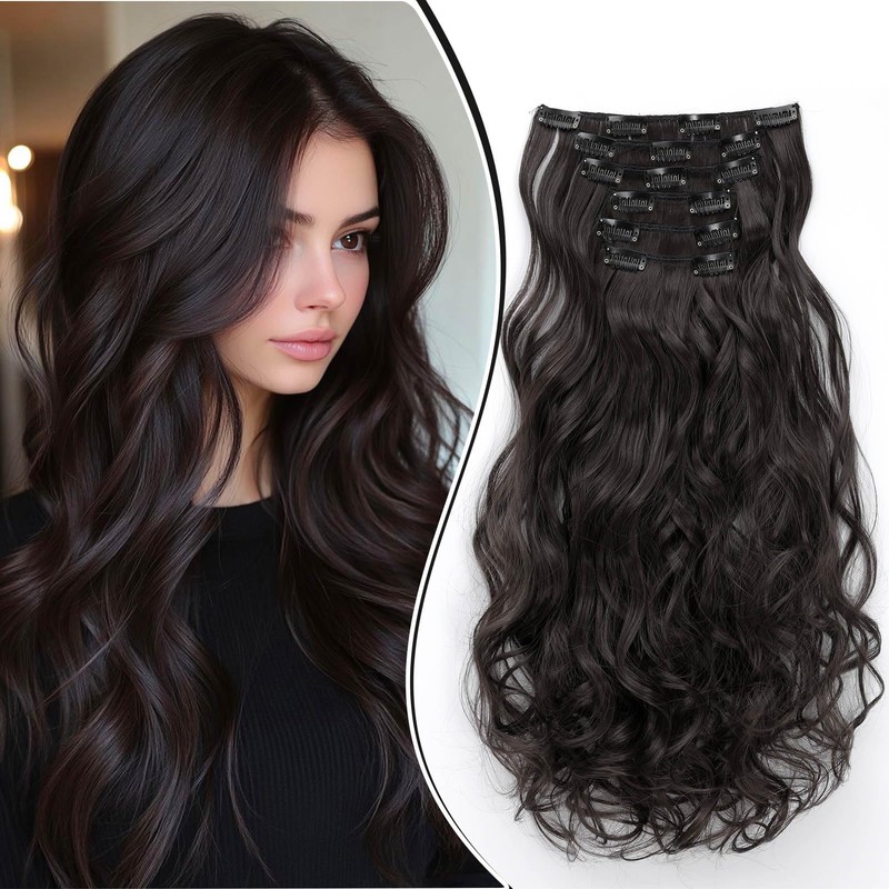 6-piece clip-in hair extensions curly wavy.