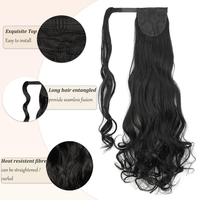 - Easy to wear and take off: wrap around ponytail with clip well sewn, no band, no glue, do not damage your scalp and hair. You can finish it in minutes.