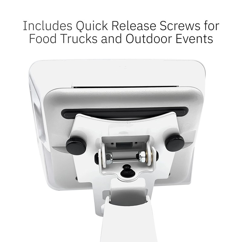 - Includes quick release screws for use with food trucks and outdoor events; ultimate convenience for merchant and customer; protect your countertop and lift your device off the counter completely; ideal for retail environments with limited counter space