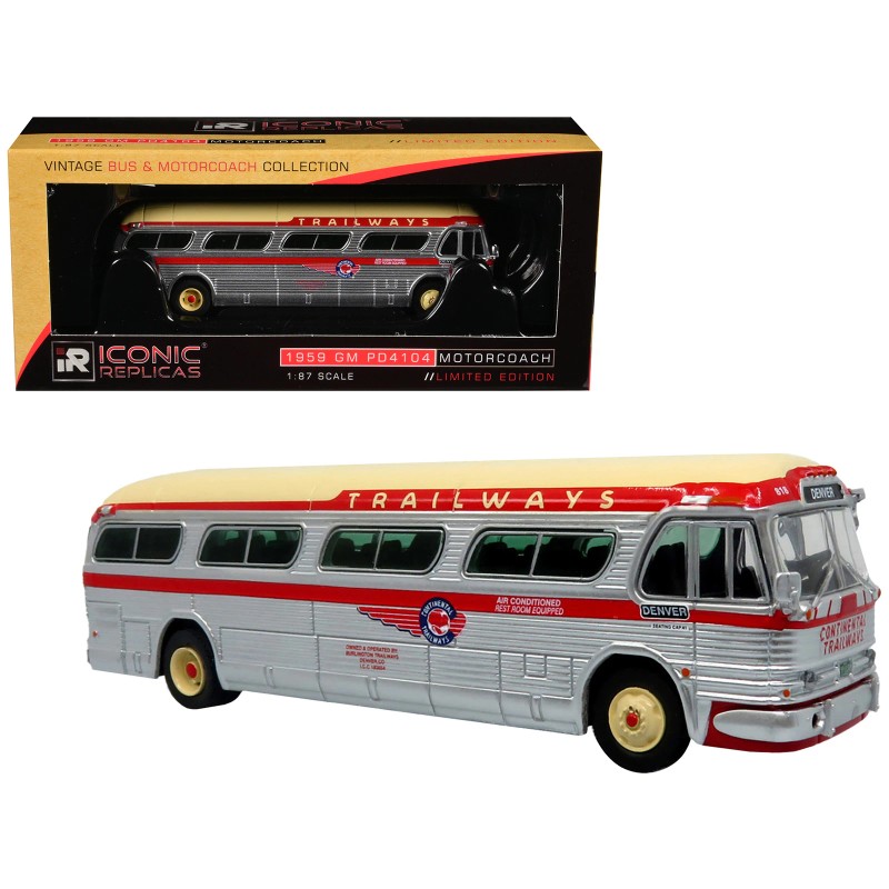 DCD 1959 for GM PD4104 Motorcoach Bus Continental Trailways Silver Cream Red Stripes Automatic Transmission Bus Motorcoach