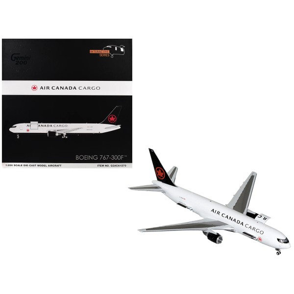 DCD Boeing 767-300F Die-Cast Commercial Aircraft 'Air Canada Cargo' (C-GXHM) Gemini 200 Interactive Series in White Black Tail