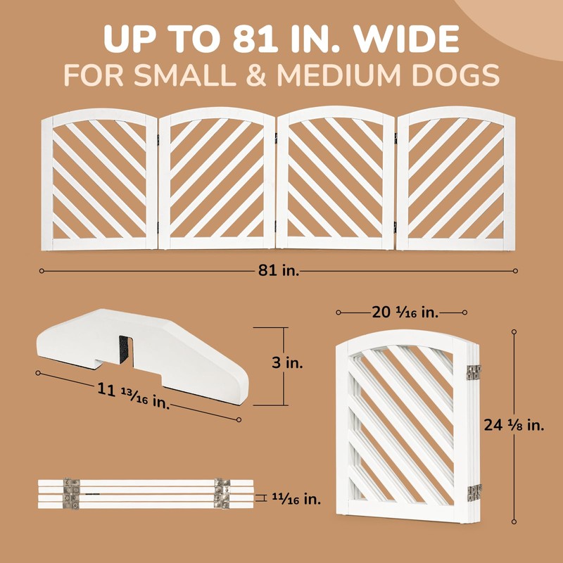 - OPTIMAL SIZE FOR SPACE SAVING: The wooden pet gate for dogs span up to 81 inches when completely extended, offering full coverage for any space; When not in use, our wood indoor dog gate folds to a compact 20 1/16 inches size for convenient storage
