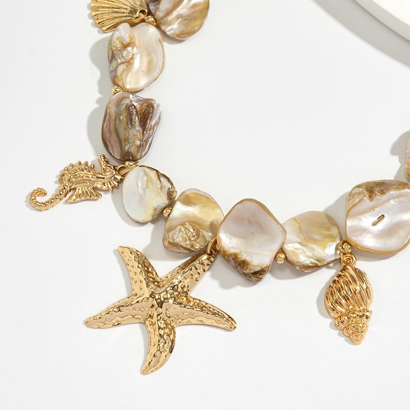 - Beach Necklace Evokes Seaside Charm, Perfectly Complementing Flowy Sundresses, Breezy Linen Shirts, And Other Warm-Weather Ensembles With Its Versatile Silhouette.
