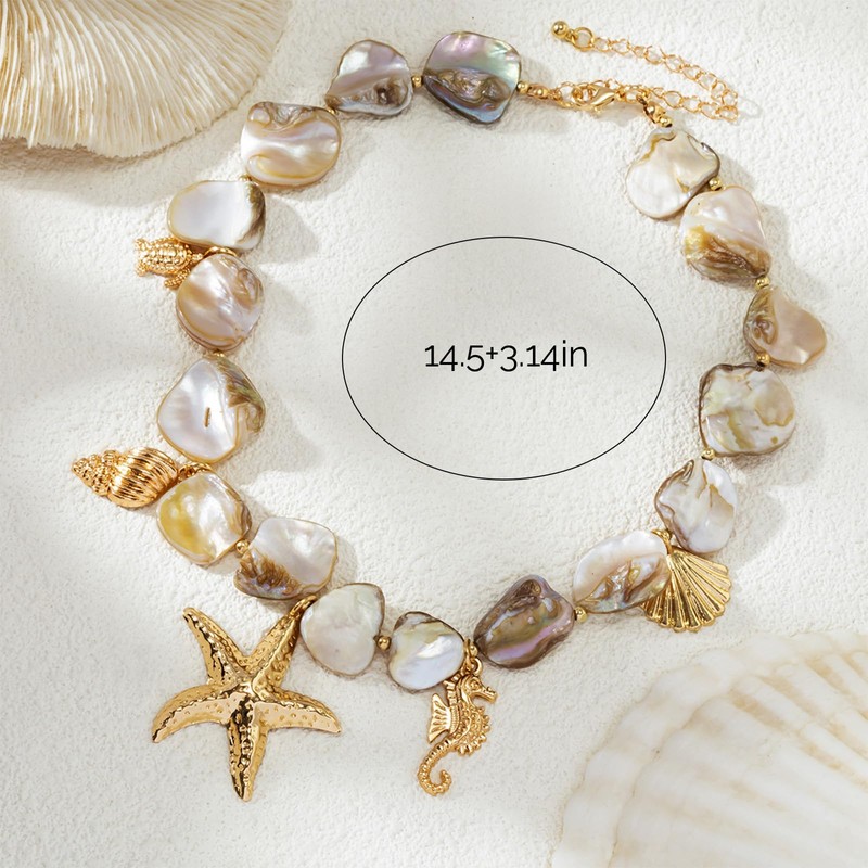 Dcfywl731 Starfish Shell Beach Necklaces for Women Summer Boho Seashell Pendant Beach Necklace Summer Ocean Jewelry Gift, Vacation Seaside Accessory
