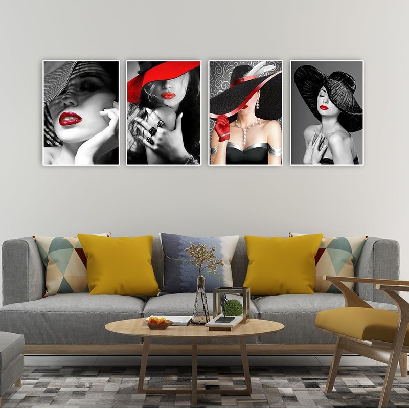 DCIDBEI 4 Pack 5D Diamond Painting Women Crafts Adult Women 30 x 40 cm Diamond Painting Woman with Hat Rhinestone Embroidery Cross Stitch Kits Diamond Painting Women Motifs Painting by Numbers Woman