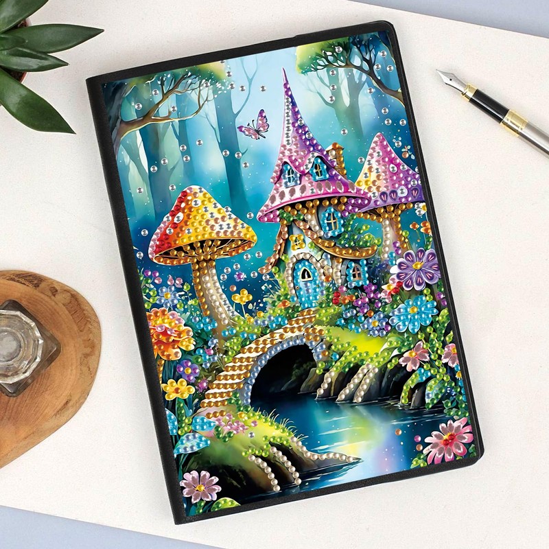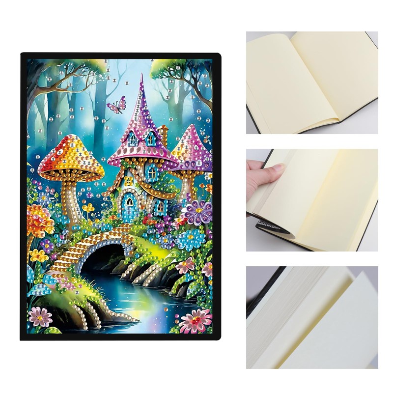 DCIDBEI DIY A5 Blank Notebooks Diamond Painting Journals Diamond Painting Notebook Mushroom House Embroidery Cross Stitch School Stationery Diary Sketchbook A5 Sketchbook Birthday Cottage