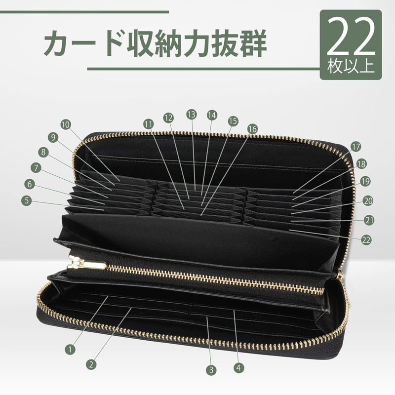 - Outstanding Storage Capacity: Bill compartment x 3, Free pockets x 2, Card pockets x 22, Zippered coin purse x 1, Can store various cards, bills, coins, and receipts