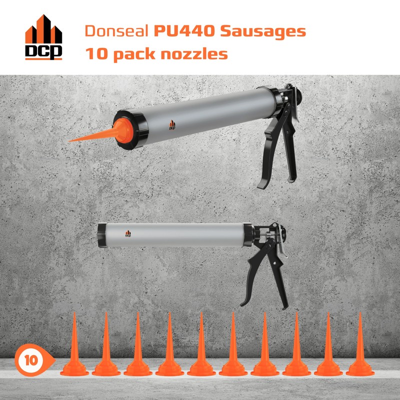 DCP 10 Pack Replacement Nozzles for Donseal PU440 20 fl.oz. Sausage Polyurethane Caulk, Single-Use Nozzles, Strong Plastic, For 20 fl.oz. Sausage Caulking