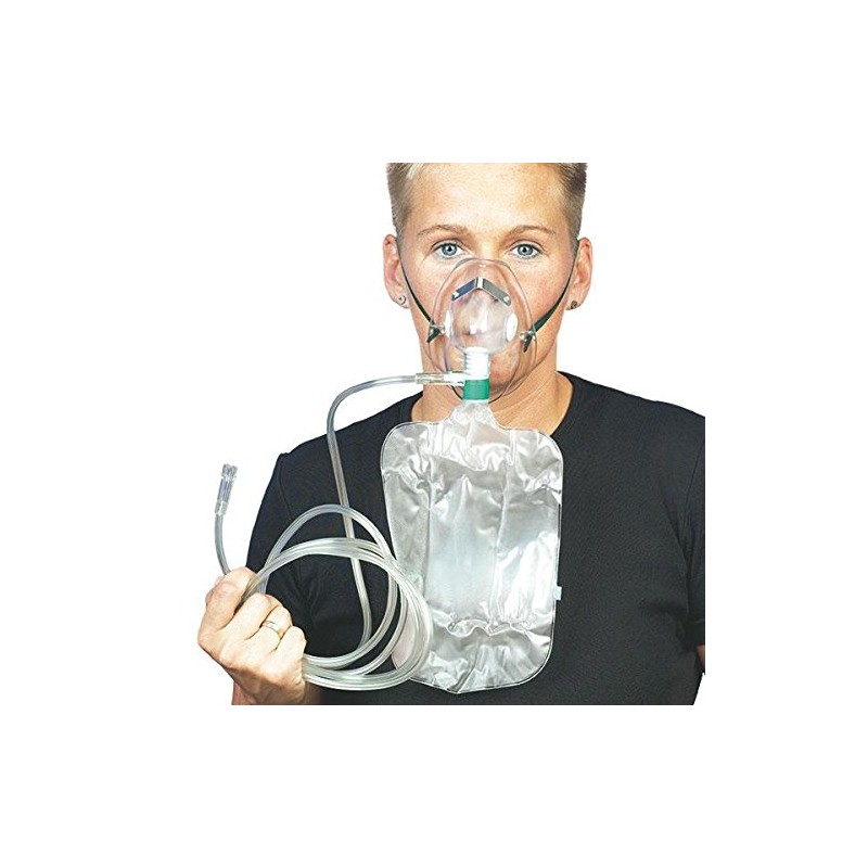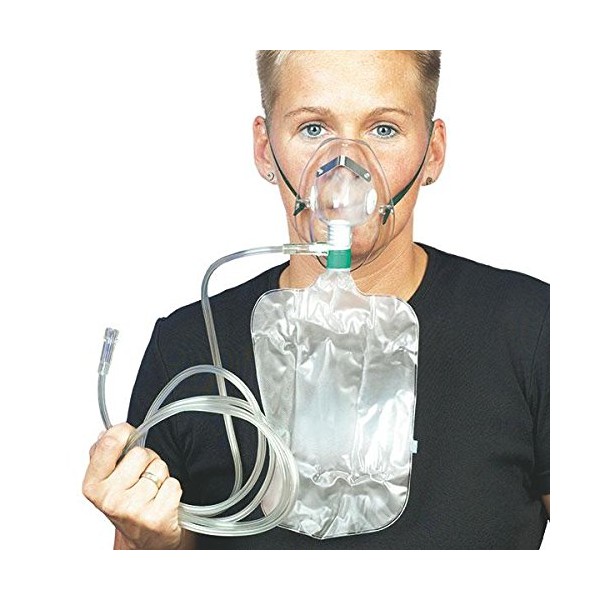 - With reservoir bag, 2.10 m safety hose, nose clip and fixing tape