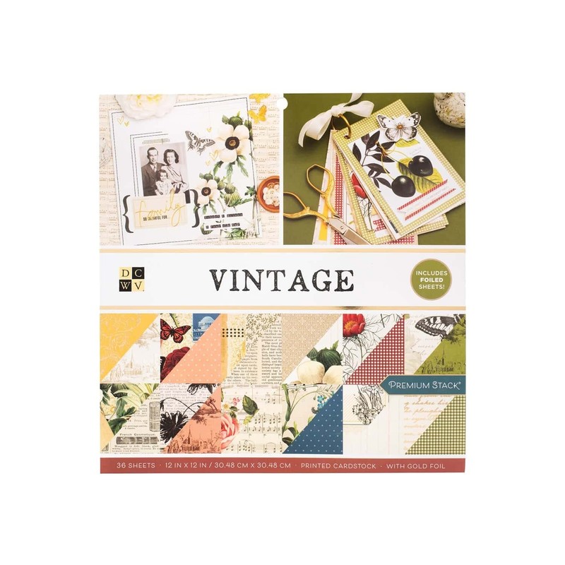 DCWV Paper Stack 12X12, Vintage, W/Gold Foil