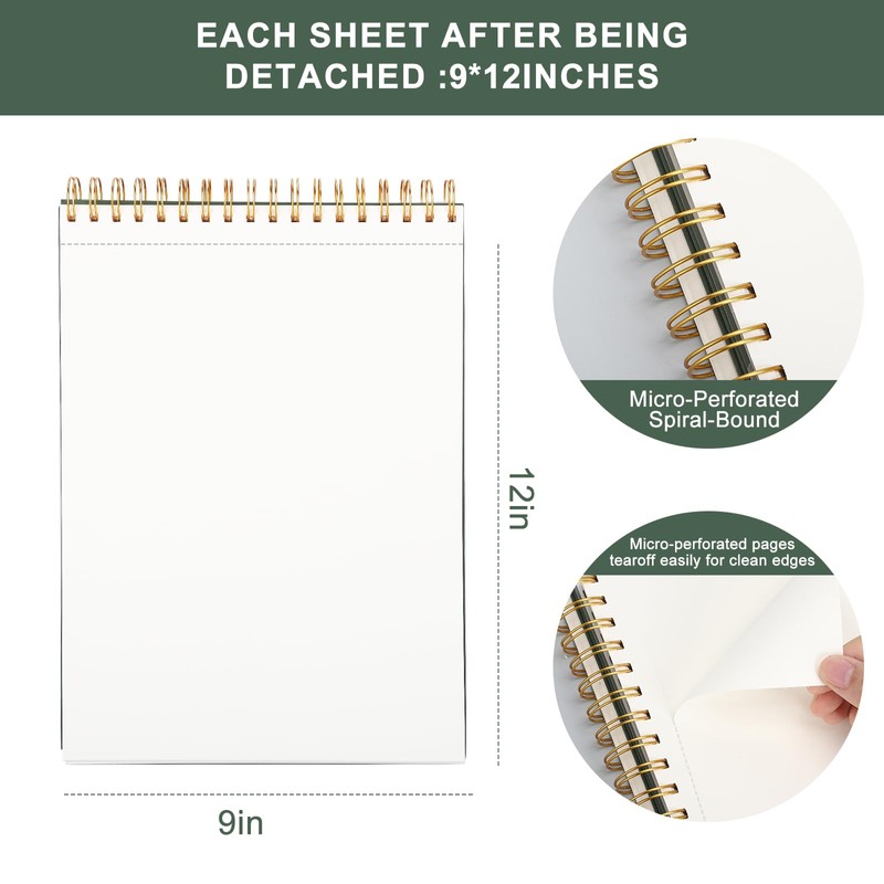 - 【Convenient Gold Ring Binding Design】: Our sketch book is attached using a sturdy Gold ring binding,Gold ring echoes the hot stamping process on the cover. which can protect the paper when turning pages. Meanwhile, the drawing pad is flexible, can be rotated 360 degrees to maximize the sketching, drawing, and writing space.You can express yourself smoother without your wrist being disturbed during sketching on the spiral bound sketchbook 9x12