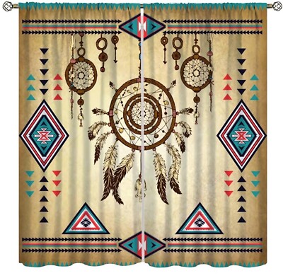 Aztec Feather Curtains,Vintage Native American Indian Ethnic Tribe Dreamcatcher Window Treatments for Bedroom Living Room Kitchen Window Drapes 2 Panels Set Total Size 42 x 63 Inch