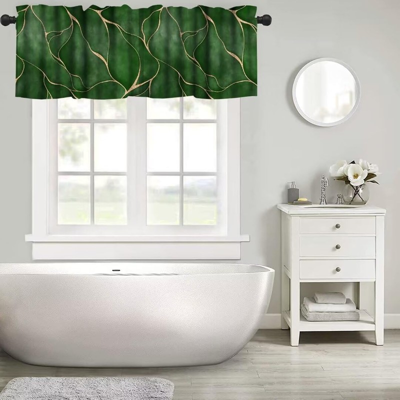 DDCBNS Marble Texture Curtains Valance,Modern Green Abstract Luxury Art Rod Pocket Window Treatments for Living Room Bedroom Kitchen Bathroom Café,1 Panel,54" x 18"