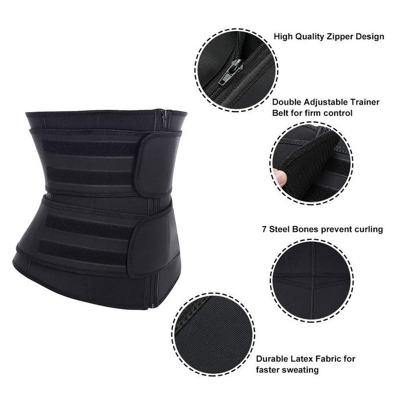 DDFS Corset Women's Body Shaper Seamless Sweat Sports Black Workout Waist Trainer, Double Belt Black, Large