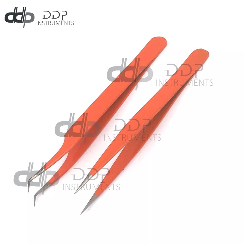 DDP 2 Pieces Straight and Curved Tip Tweezers Eyelash Extensions,Ora