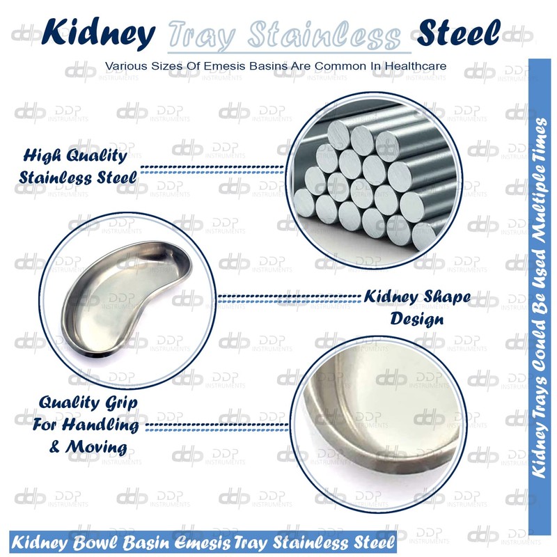 DDP 8" Kidney Bowl Basin Emesis Tray Stainless Steel Satin Rounded Edges Dental
