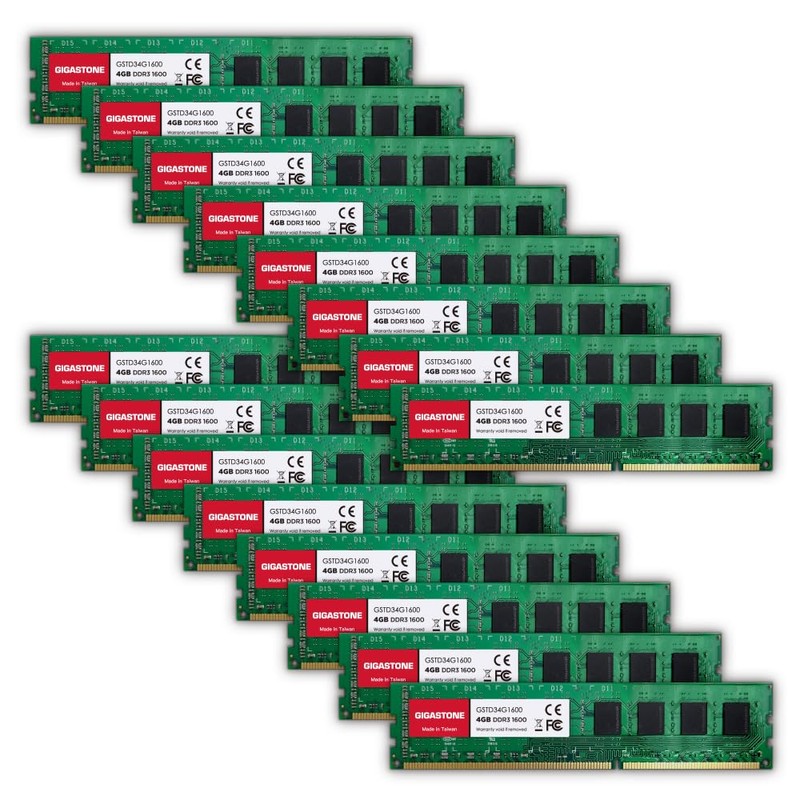 【DDR3 RAM】 GIGASTONE 64GB Kit (16x4GB) DDR3/DDR3L 1600MHz (1333MHz) PC3-12800 (PC3-10600) CL11 1.35V/1.5V 2Rx8 UDIMM 240 Pin Unbuffered Non ECC High Performance PC Desktop Memory Upgrade