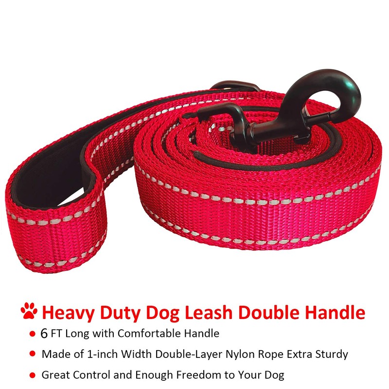DDSCOLOUR Heavy Duty Dog Leash 5-6ft Long with Comfortable Padded Handle Training Lead Reflective Mountain Climbing Rope Dog leashes Walking Training Leash for Medium Large Red