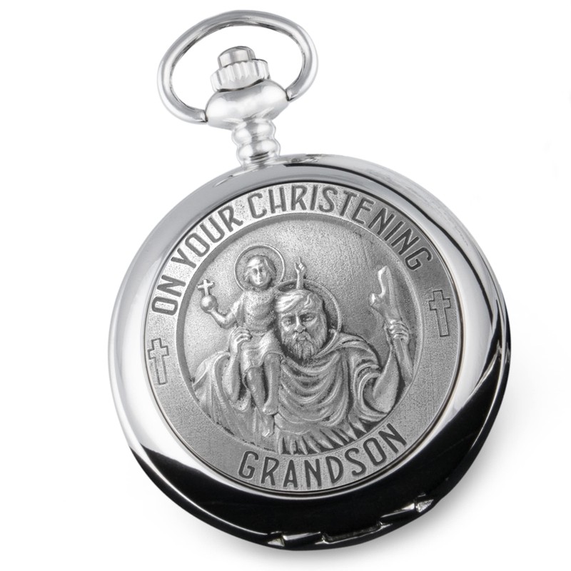 De Walden Grandson Christening St Christopher Pewter Feature Pocket Watch Gift