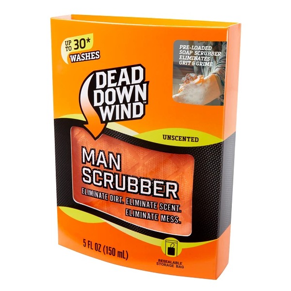 SALES TAX NOW CHARGED ON ALL ORDERS! ITEM IS NEW IN OPEN & DISTRESSED BOX! BOX OPENED FOR INSPECTION! ITEM IS PERFECT! Whether you are on the go or at your next hunting camp, you can always count on Dead Down Wind™ for your scent elimination needs. The All-New Man Scrubber by Dead Down Wind™ features an innovative and new showering experience that will not only hide odor but annihilate it. With Dead Down Wind’s Scent Prevent Technology, enzymes actively work to seek and destroy bacteria right at the source and make the way we wash a whole new routine. Whether you are on the go or at your next hunting camp, you can always count on Dead Down Wind™ for your scent elimination needs. The All-New Man Scrubber by Dead Down Wind™ features an innovative and new showering experience that will not only hide odor but annihilate it. With Dead Down Wind’s ScentPrevent Technology, enzymes actively work to seek and destroy bacteria right at the source and make the way we wash a whole new routine. Dead Down Wind Man Scrubber: