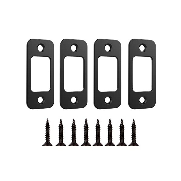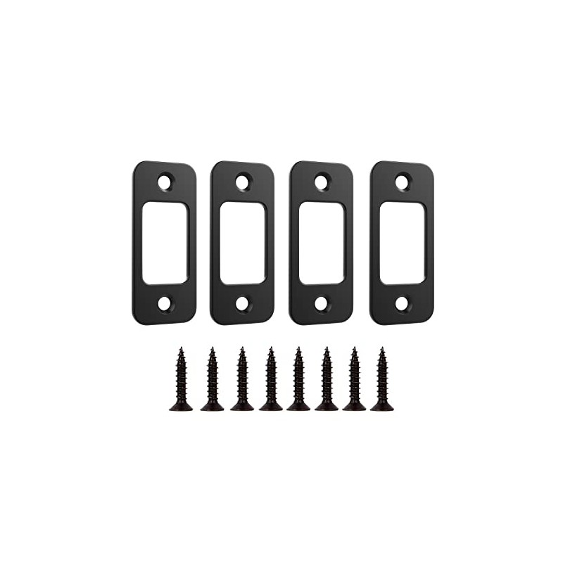 Deadbolt Strike Plate Door Backplate 1" x 2-1/4" Round Corner (Matte Black) with Screws 1-3/8" - 4 Pack