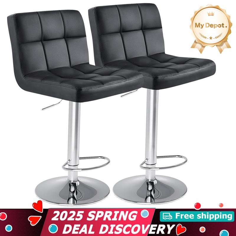[DEAL] Set of 2 PU Leather Adjustable Swivel Barstools with Back and Armless Design - Hydraulic Kitchen Counter Height Bar Stools - Color: Black