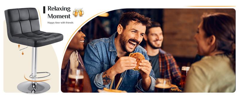 [Multifunctional Adjustments] These bar stools feature a height-adjustable function to suit your comfort level based on bar height. With a footrest and 360° swivel capability, you can relax and engage in casual conversations effortlessly.