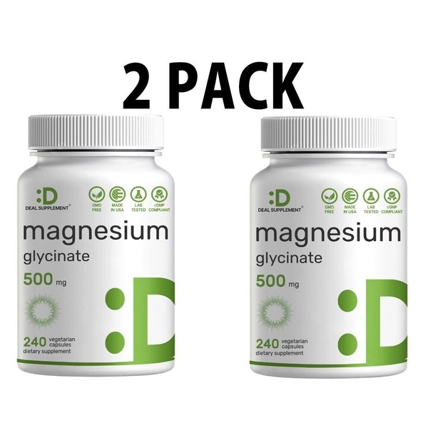 Deal Supplement 2 PACK, Magnesium Glycinate 500mg, 240 Veggie Capsules, Chelated Easy Absorption