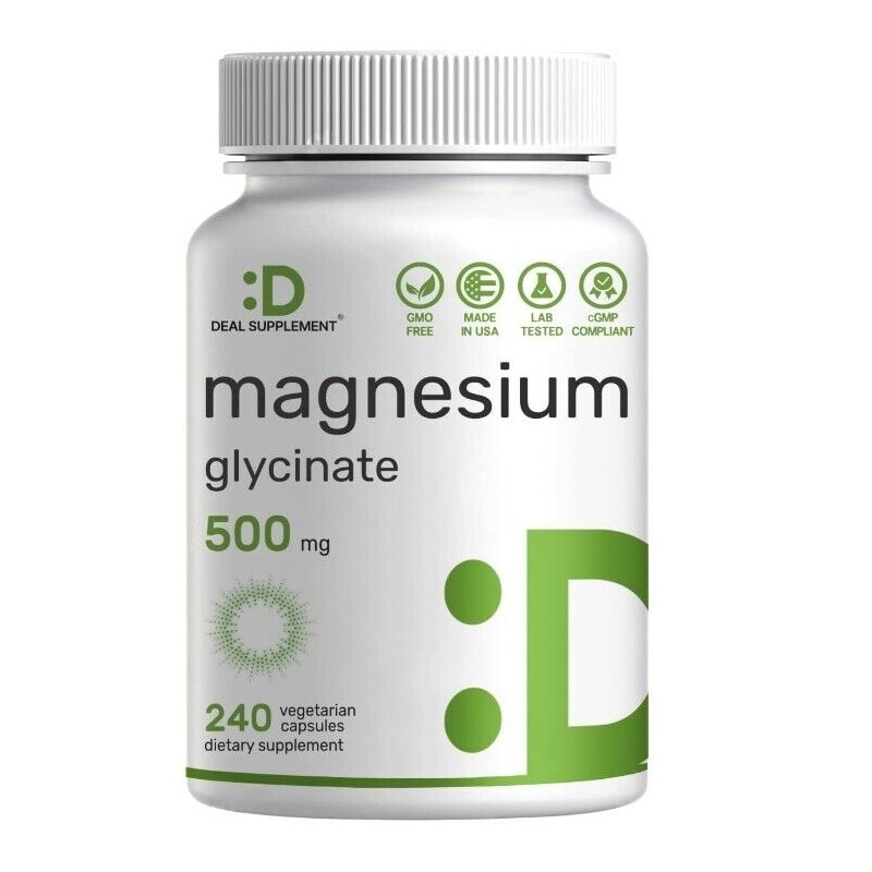 Deal Supplement Magnesium Glycinate 500mg, 240 Veggie Capsules, Chelated for Easy Absorption