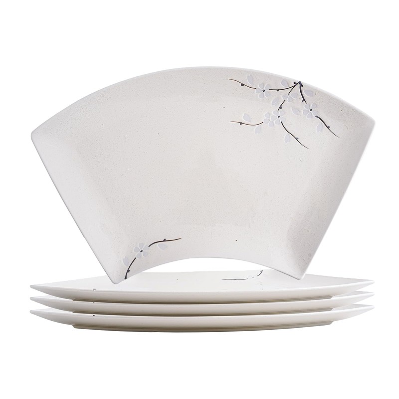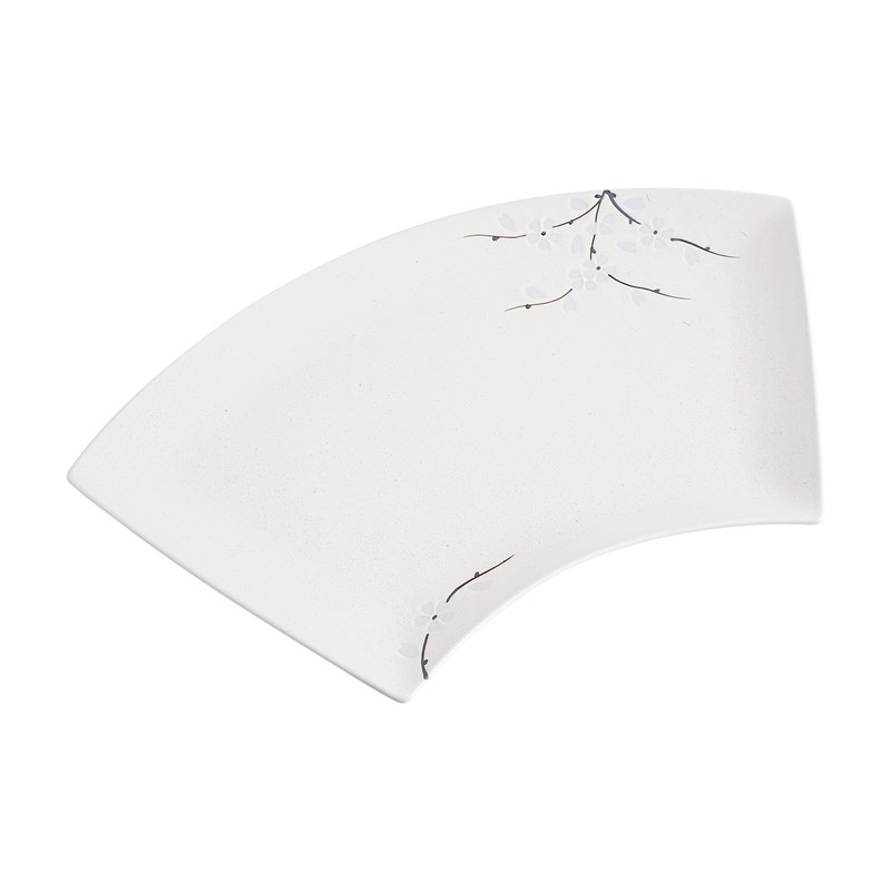 DealbyBox 14 Inch Sushi Plate Fan-Shaped Serving Plate Ceramic Dumpling Dish Food Serving Tray Cold Dish Plate Cheese Board Snack Dessert Plate (4Pack, White Sakura)