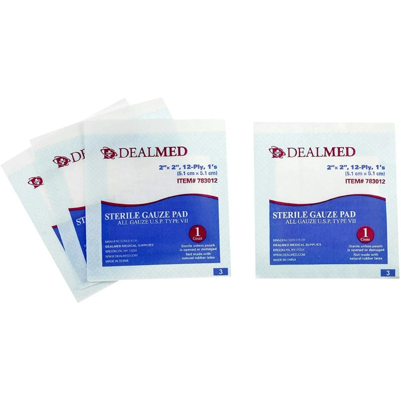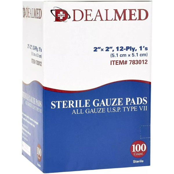 Dealmed Sterile Gauze Pad Sponges Dressing 2" x 2" 12 Ply Singles - 100 Count