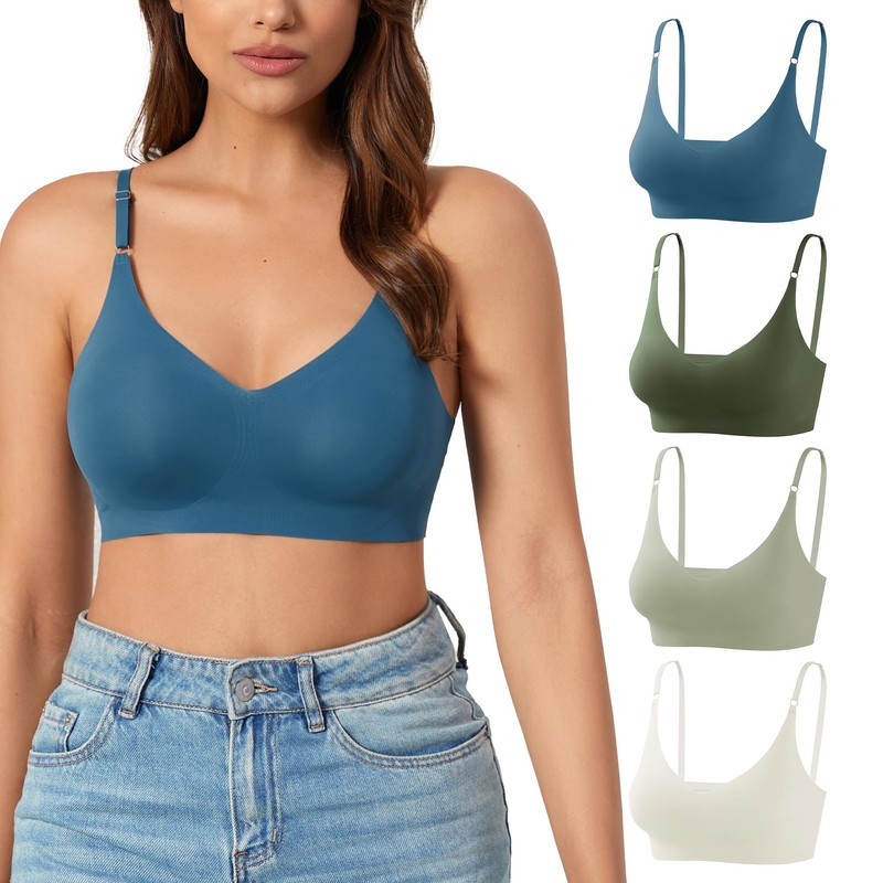 DEANGELMON 4 Pieces V Neck Bralettes Padded Seamless Adjustable Straps Bra Ev...