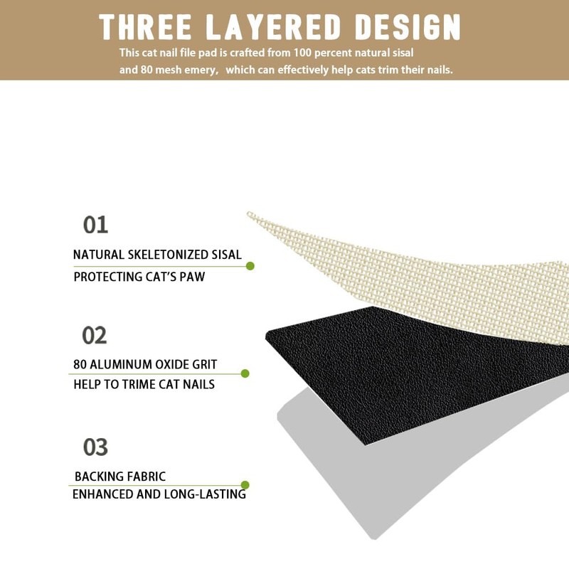 - LAYERED CAT SCRATCH PAD DESIGN: Top netted sisal protects paws, middle 80-grit emery naturally files nails, and reinforced backing boosts stability. This cat scratcher that files nails prevents abrasion while maximizing scratching satisfaction