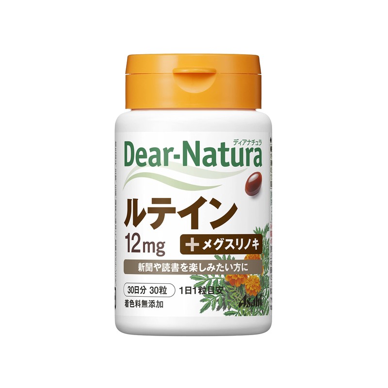 "Dear Natura Lutein 30 tablets (for 30 days)" is a supplement with lutein from marigolds. It also contains acer maximowiczianum, also known as Nikko maple, and vitamin E. Directions for use: Take 1 tablet per day with hot or cold water. Precautions: Do not exceed recommended daily dosage.