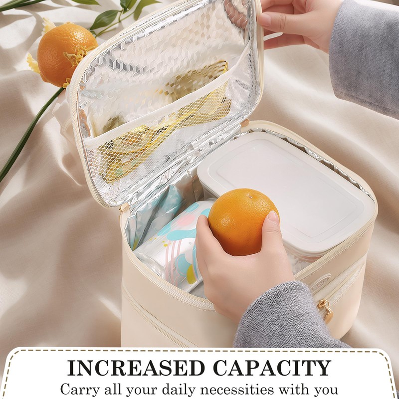 DEARBAG Lunch Bags with Handle for Women, Reusable Leakproof Lunch Box Tote Bag, Portable Insulated Cool Bags, Packed Thermal Cooler Bag for Work, School, Picnic and Travel (Beige) (Double-Layer)