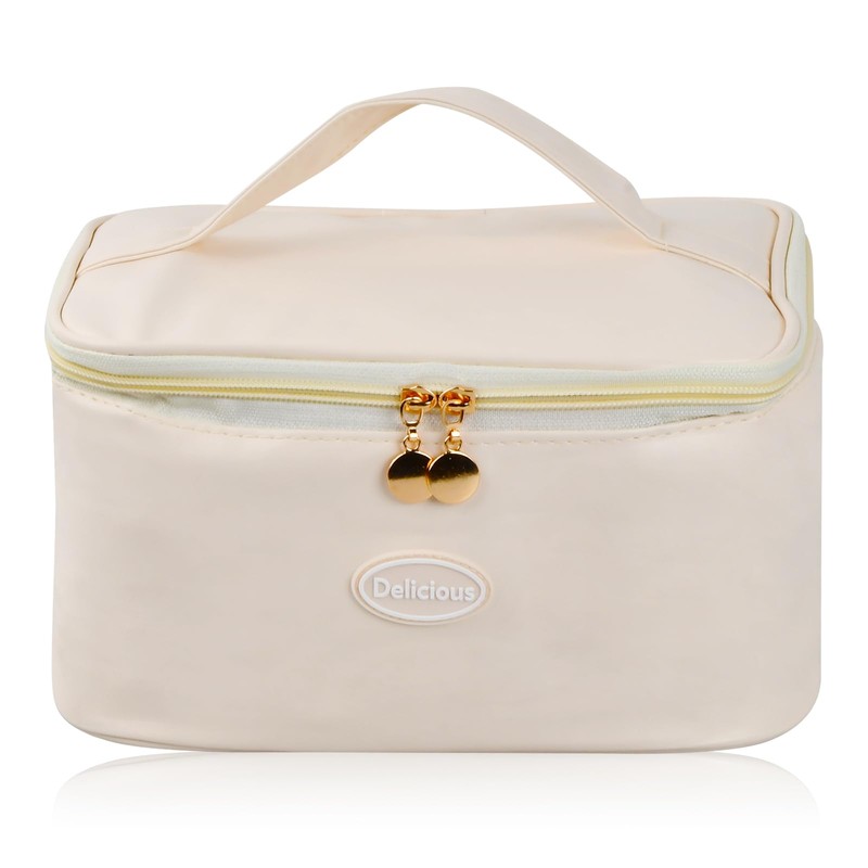 DEARBAG Lunch Bags with Handle for Women, Reusable Leakproof Lunch Box Tote Bag, Portable Insulated Cool Bags, Packed Thermal Cooler Bag for Work, School, Picnic and Travel (Beige) (Single-Layer)