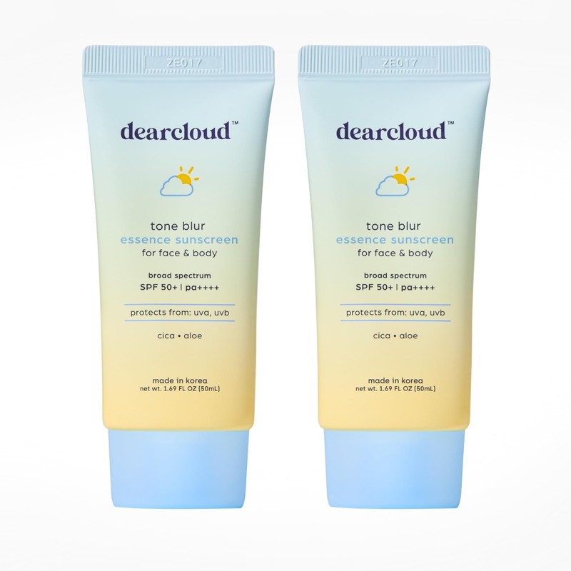 dearcloud Tone Blur Essence Sunscreen Duo – SPF 50 (1.69 fl oz) – Korean Sunscreen for Face with Aloe & Cica – Blurring Primer (2 Pack)