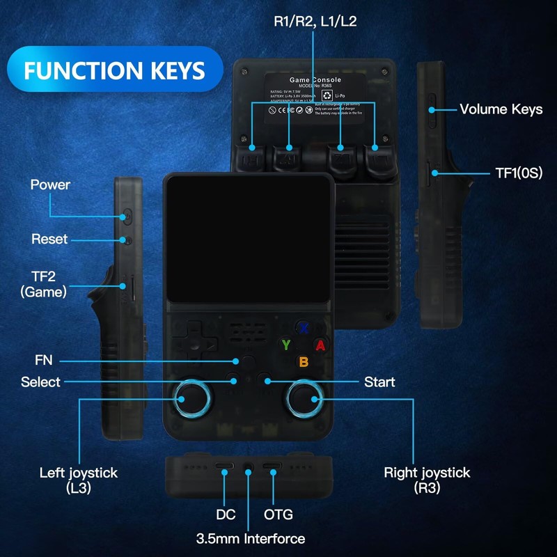 Display: A 3.5″ HD IPS screen with a resolution of 640×480 ensures vivid colors and crisp visuals. Controls: Dual joysticks, L/R bumpers, and a classic layout deliver precision and comfort for every game. Whether you’re chasing pixel-perfect nostalgia or smooth gameplay, the R36S console bridges vintage aesthetics with modern innovation.