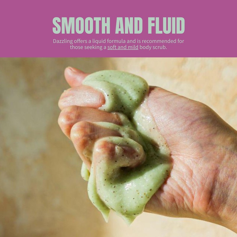 - Dazzlin: Tone up body scrub, moist plant derived cellulose and soft grape seed particles are mild scrubbed to remove unnecessary exfoliatus, and make the tone of dull skin