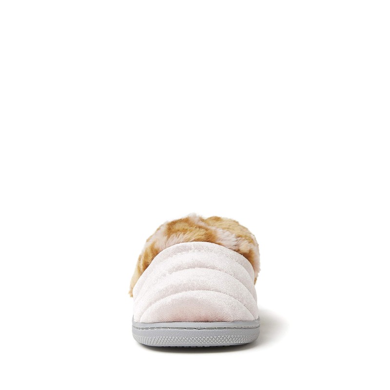 Dearfoams unisex child Evelyn Velour Clog With Leopard Cuff Slipper, Pale Mauve, 9-10 Big Kid US