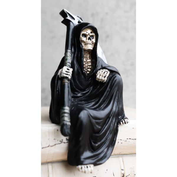 Death On The Shelf Gothic Grim Reaper With Scythe Sitting Shelf Sitter Figurine