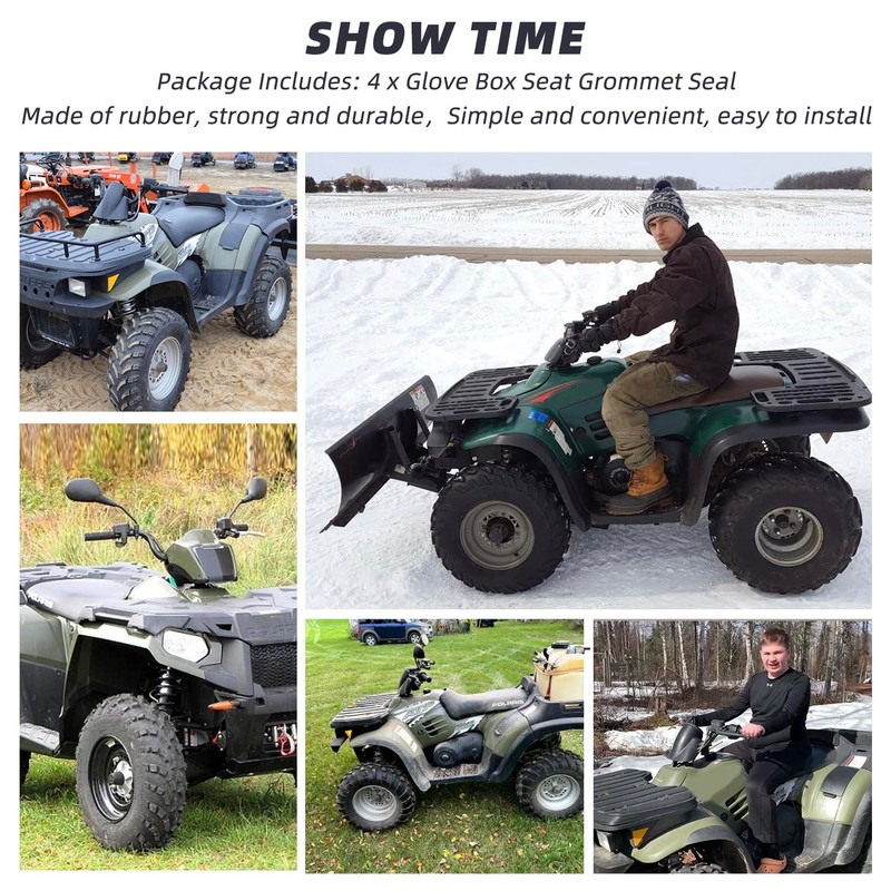 Part Number: 5412504 5410774 compatible with Polaris ATP 330, 500 2004-2005, for Polaris General 1000 2016-2020, for Polaris Ranger 400 2010-2014, for Polaris Ranger Crew 570 2015-2020, for Polaris Ranger Diesel 2014-2018, for Polaris Ranger HD 700 2009 Package Includes: 4 x Glove Box Seat Grommet Seal zers