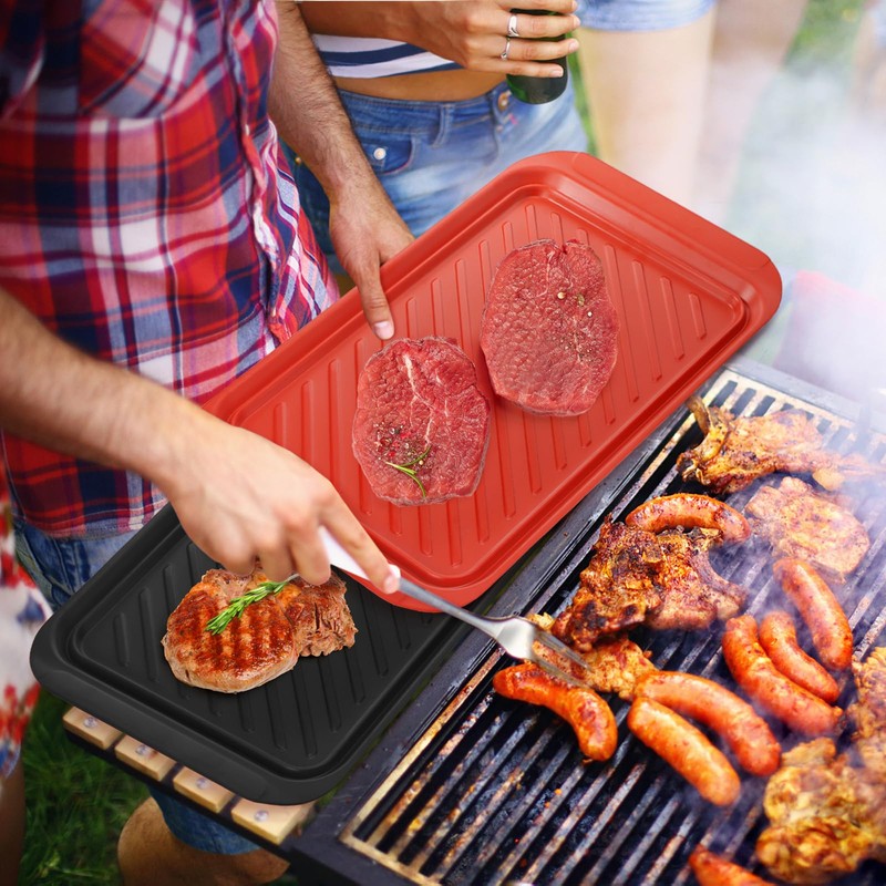 - Food Prep and Serve: The outdoor serving trays has two different colors in red and black, use the red tray for raw foods and transporting it to the grill, while the black tray is used for serving cooked food, simplifying food safety during your grilling and serving process, making BBQ easier and less messy