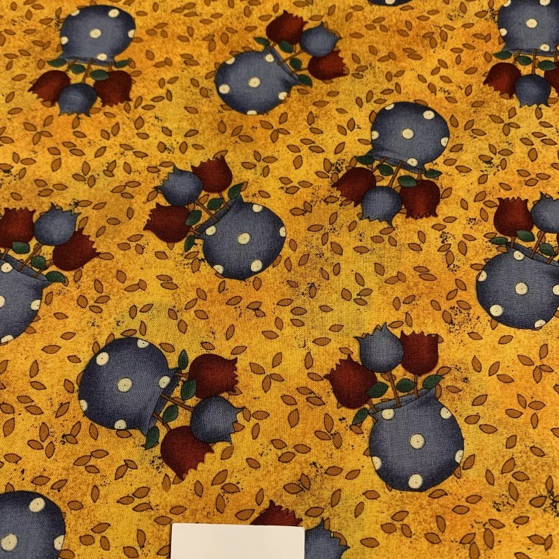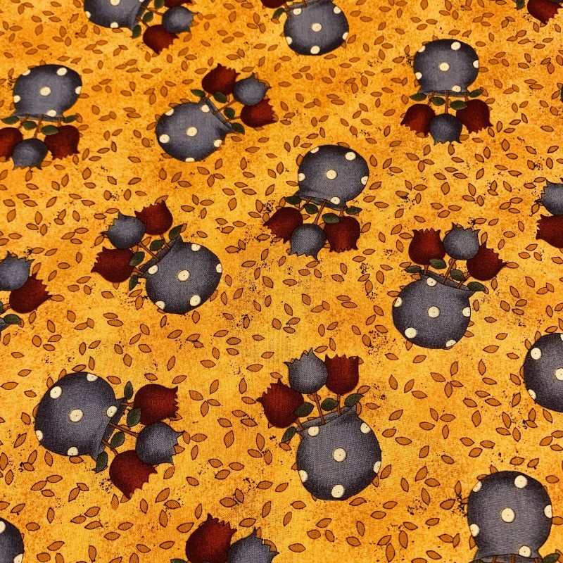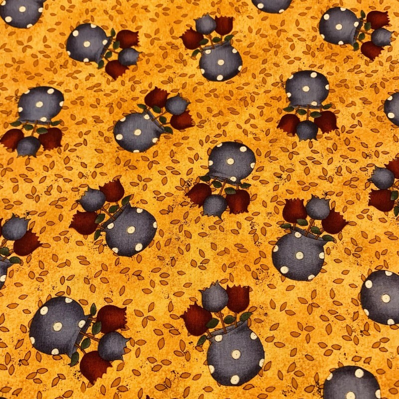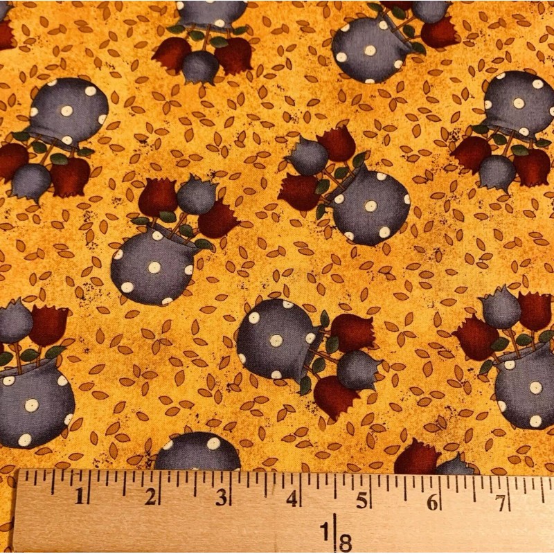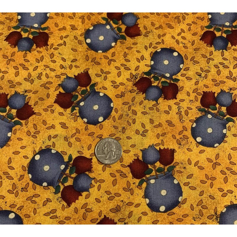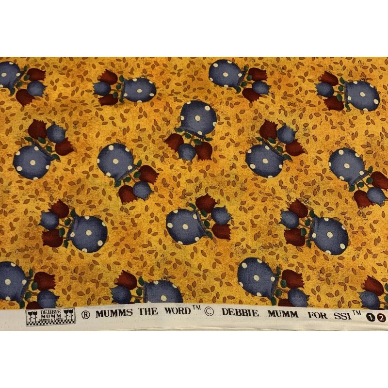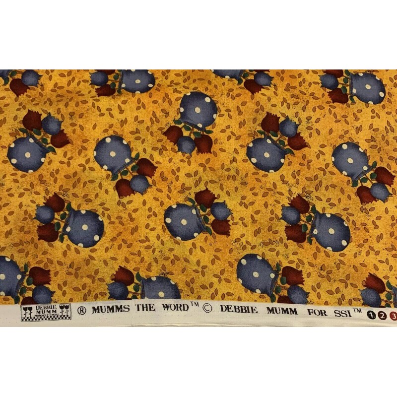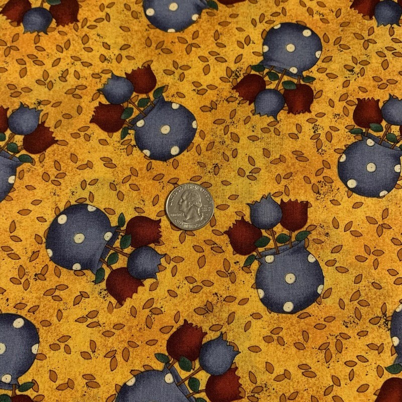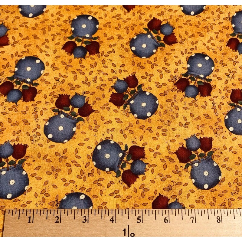 Debbie Mumm Vtg Floral Polka Dot Flower Pot Fabric By Debbie Mumm For SSI Blue Golden BTHY