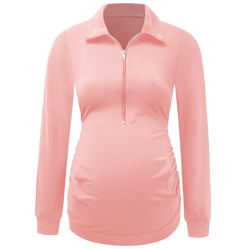 - [Material & Care Instruction]: DEBELLY maternity zipper shirt is lightweight, soft and comfy, stretchy for your belly. Hand wash recommended, machine wash cold with gentle cycle and with similar colors.