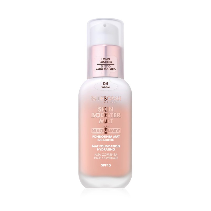 Deborah Milano Skin Booster MAT Foundation from Serum, SPF 15, N.4 Warm, Invigorating and Brightening, with Vitamin C, Natural Effect, Smooths the Complexion, 30 ml
